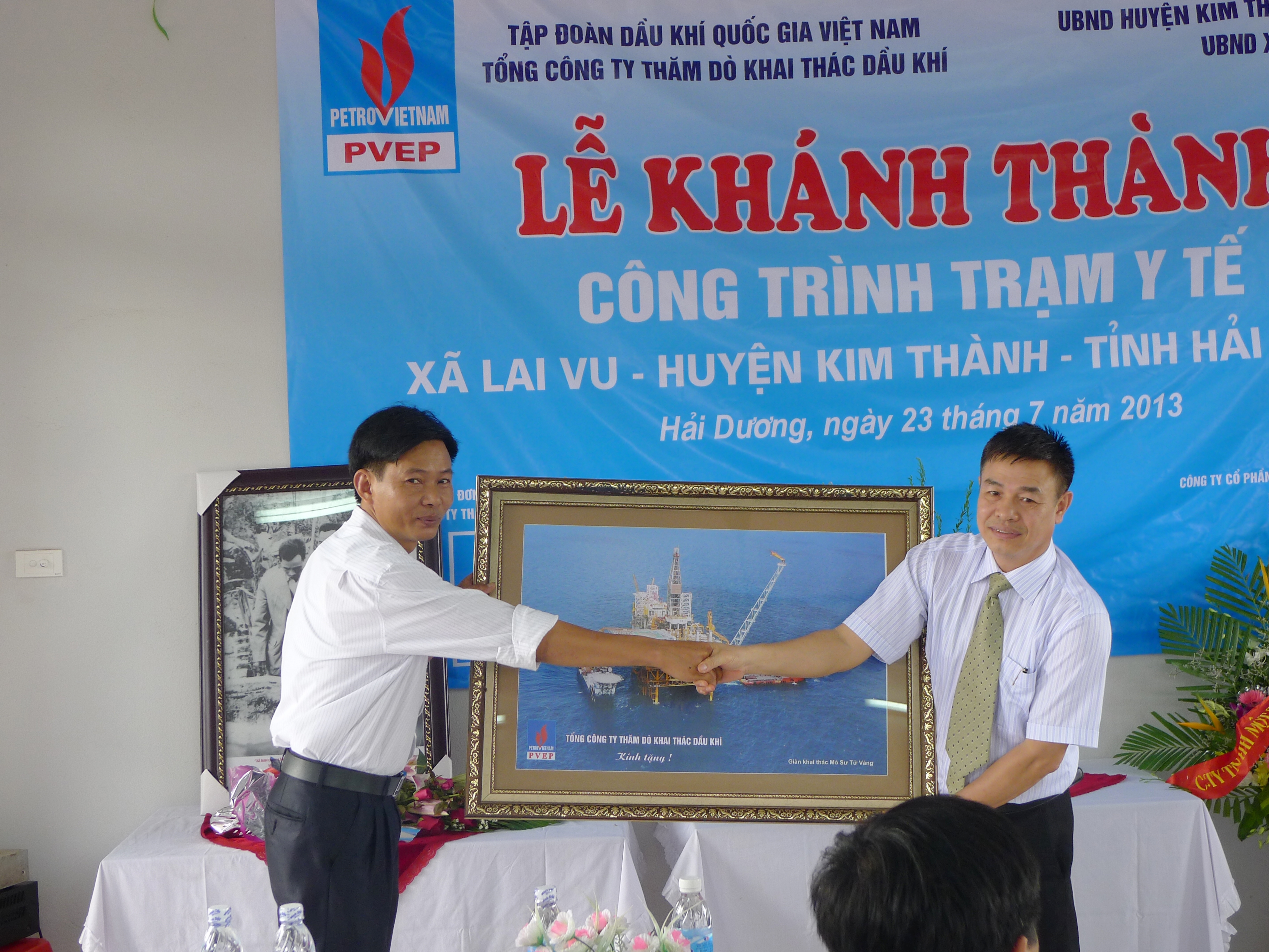 (PVEP)-Vượt qua những cơn mưa tầm tã của mùa hạ, sáng ngày 23/7/2013 đoàn đại biểu Tổng Công ty Thăm dò Khai thác Dầu khí (PVEP) dẫn đầu là đồng chí Nguyễn Văn Cư - Chủ tịch Công đoàn PVEP đã có mặt tại Xã Lai Vu, huyện Kim Thành, tỉnh Hải Dương để tham dự Lễ Khánh thành Trạm y tế Xã.
